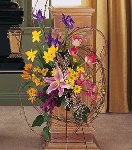 This beautiful easel spray with its unique collection of spring blossoms will spread a message of peace to all.