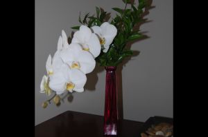 For the lover of Orchids this is probably the most favorite! With a stem length of about 26" long and just full of bloom. This beauty is placed in a 12" cylinder vase and demands the attention by all who walks past. It's petals look like Silk and measures about 5.5" across.